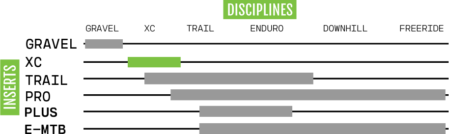 Light weight version designed for cross-country racing, light trail riding, and/or less aggressive riders.